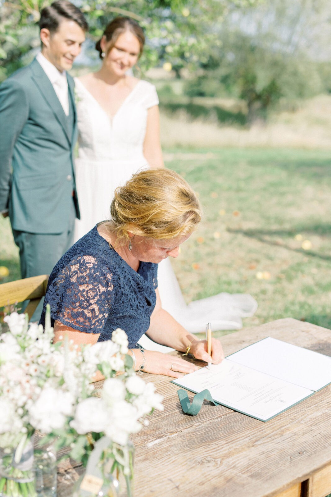 Trouwen in een boomgaard met de liefste viervoeter als ringendrager. Augustus 2022